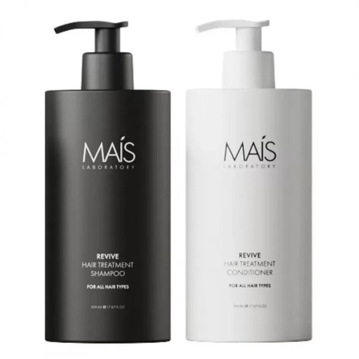 Набір Mais Revive Hair Treatment призначений для комплексного догляду за сухим, пошкодженим та пофарбованим волоссям; шампунь м’яко очищає та живить структуру, кондиціонер посилює зволоження та зміцнення, допомагає запобігти ламкості та сухості, підходить для регулярного використання на всіх типах, у т.ч. ослабленому після процедур.