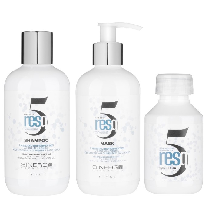 Опис Набір Sinergy RESQ5 для миттєвого відновлення волосся шампунь, маска та сироватка, 250/250/100 мл