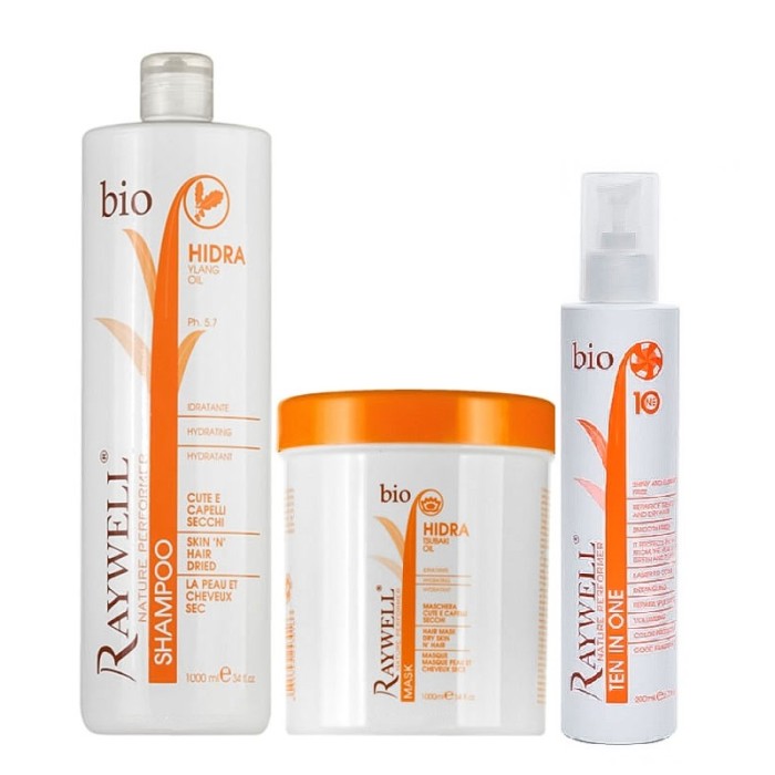 Опис Raywell Bio Hidra набір шампунь, маска та термозахист Raywell ONE 10 в 1 для зволоження волосся 2х200/100 г розлив