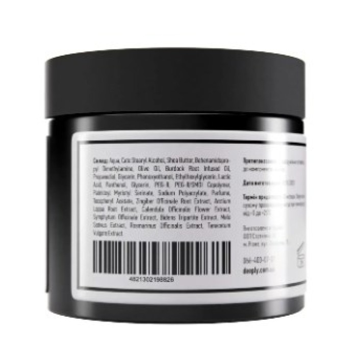 Aqua, Ceto Stearyl Alcohol, Shea Butter, Behenamidopropyl Dimethylamine, Olive Oil, Burdock Root Infused Oil, Propanediol, Glycerin, Phenoxyethanol, Ethylhexylglycerin, Lactic Acid, Panthenol, Glycerin, PEG-8, PEG-8/SMDI Copolymer, Palmitoyl Myristyl Serinate, Sodium Polyacrylate, Parfume, Tocopheryl Acetate, Zingiber Officinale Root Еxtract, Arctium Lappa Root Extract, Calendula Officinalis Flower Extract, Symphytum Officinale Extract, Bidens Tripartite Extract, Melo Sativus Extract, Rosmarinus Officinalis Extract, Tanacetum Vulgare Extract.